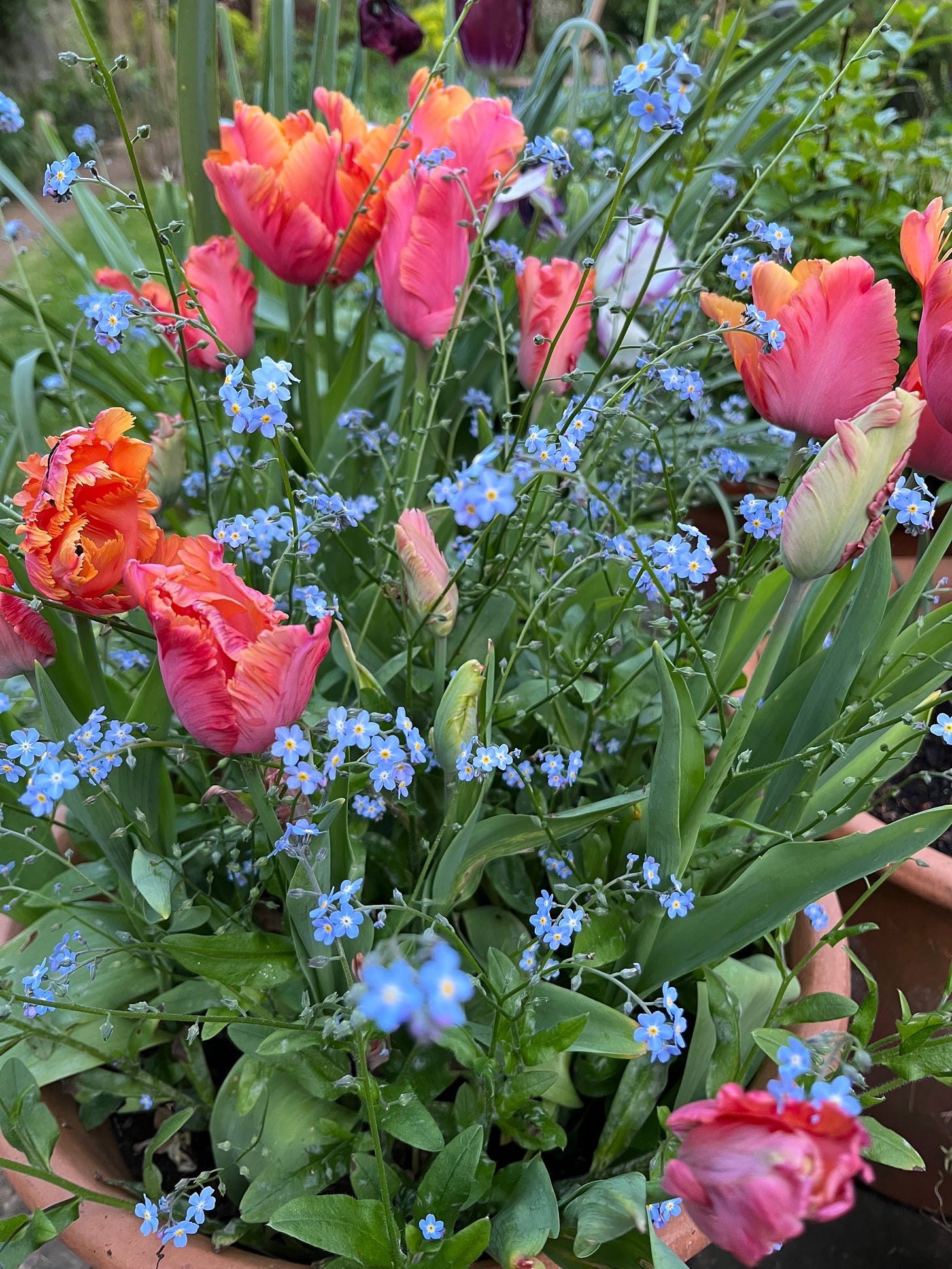 They begin to flower as the first daffodils fade and the buds of tulips start to colour up. Their sky-blue blooms are the perfect partner for tulips of pretty much any colour. I first saw them planted together en masse, many years ago at Barnsley House, the former home of the late, revered garden designer, Rosemary Verey. The entire bed was a sea of blue with the long stems and luscious heads of pink and white tulips rising out of it. They looked stunning.